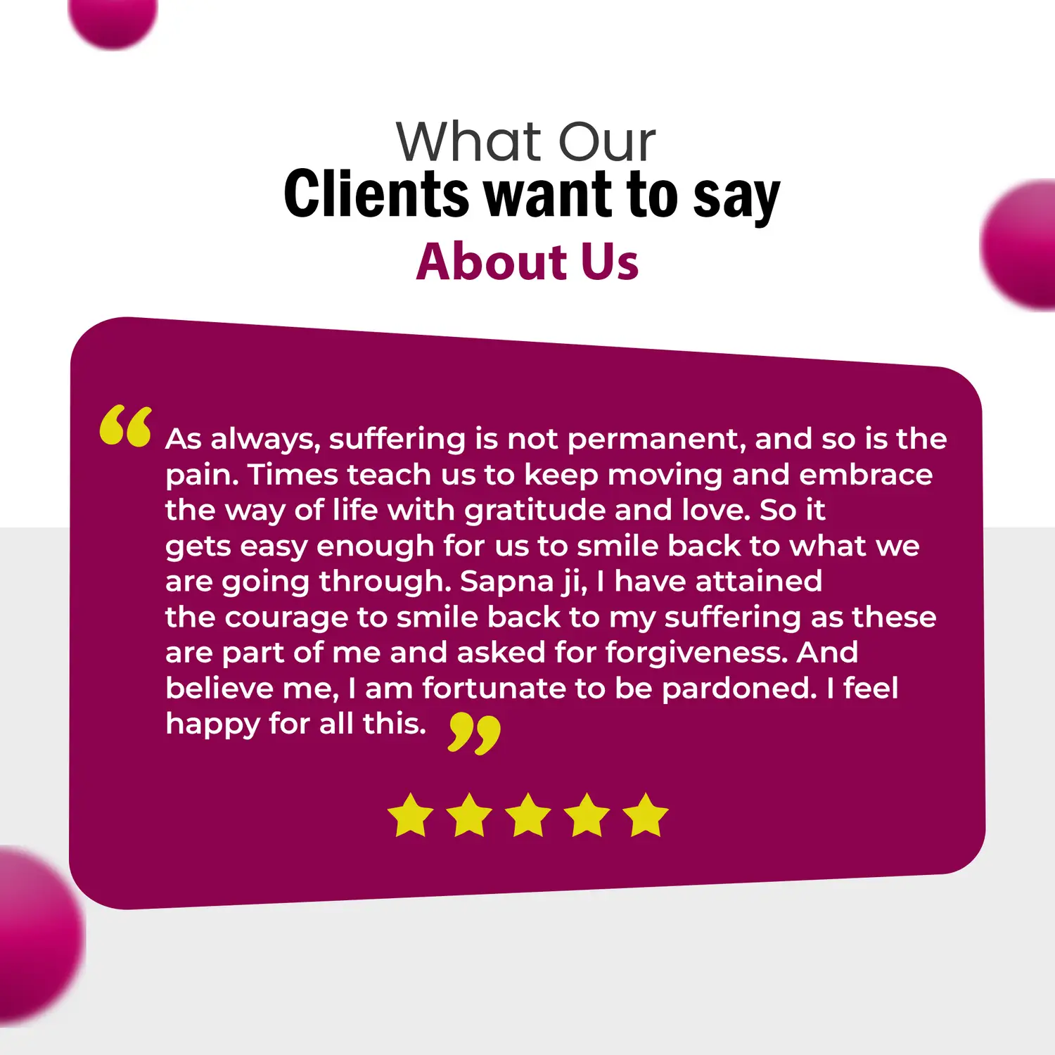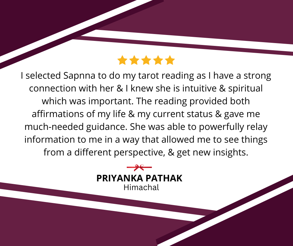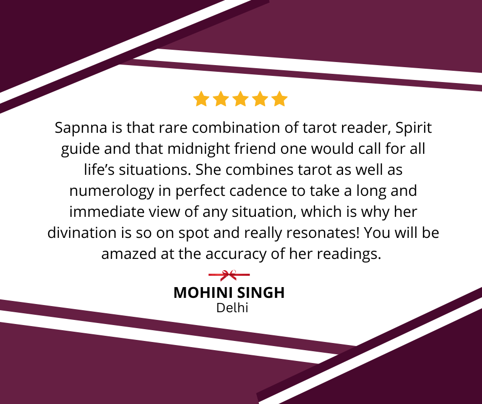 Hi I'm Sapnna, A Certified Life Coach, having more than 15 Years Of Experience in various Divination & Healing Modalities like Tarot Reading, Numerology, Astrology, Crystal Therapy, Chakra Balancing and many More.